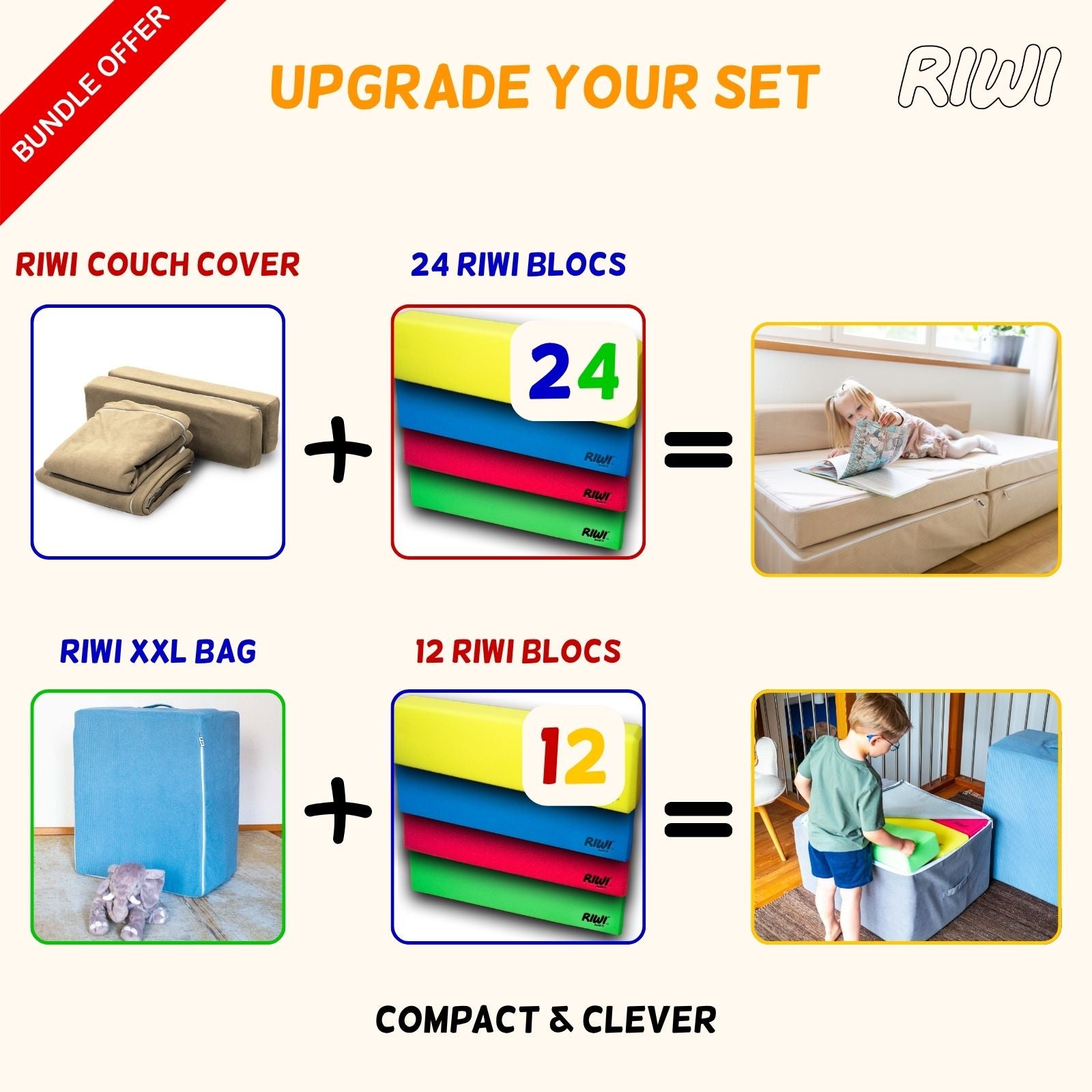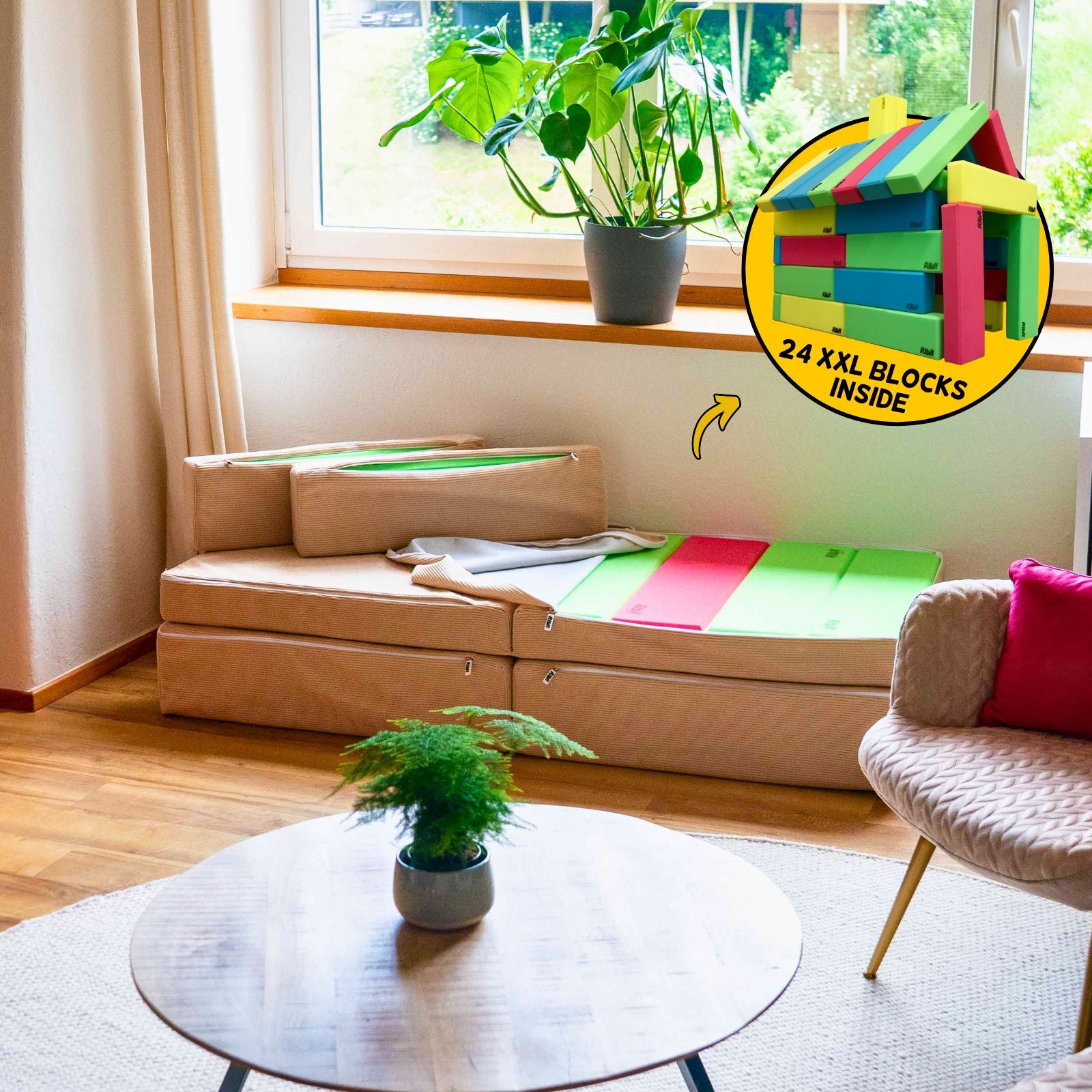 🧩 Die perfekte Ergänzung – verwandelt 24 RIWI® XXL Bausteine in ein vollwertiges Spielsofa